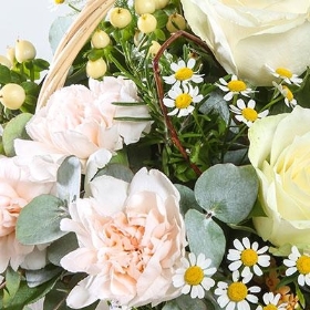 Our woodland themed Jayde basket is perfect for bringing a charming country feel gift. Using classic colours and combination of flowers creates this basket, including Roses, Thistle and Carnations